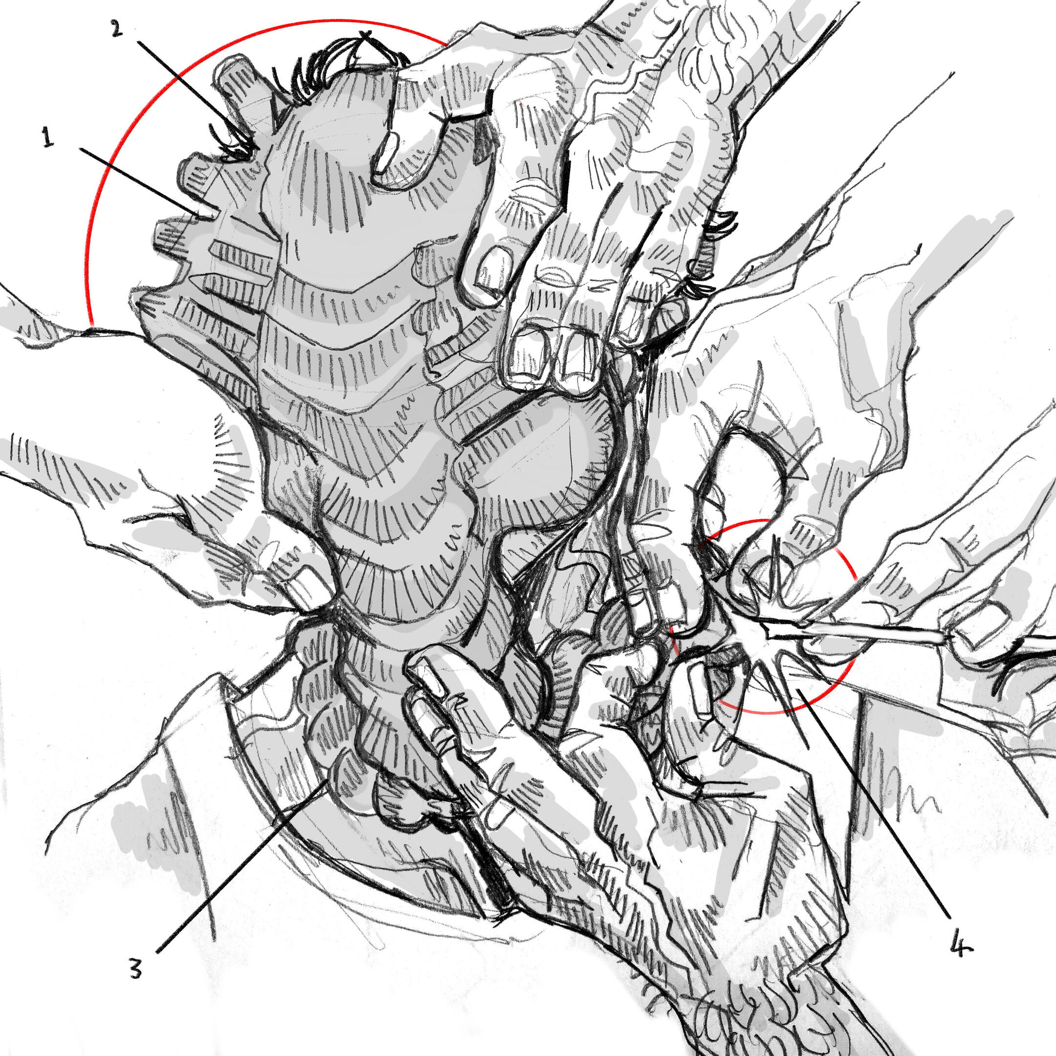 Bust sketch with digital elements